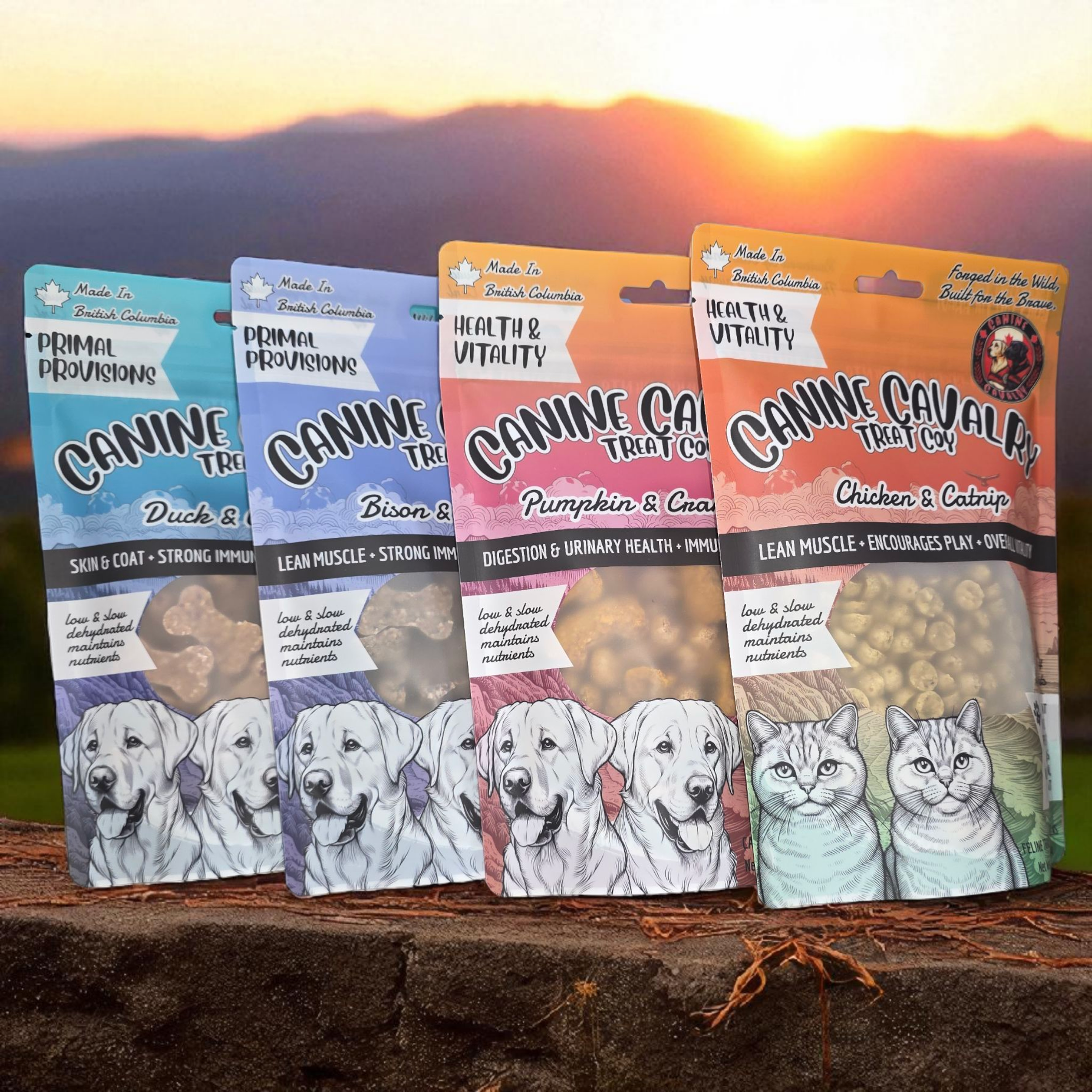 Forged in the Wild. Built for the Brave. Forged in the Wild. Built for the Brave. Forged in the Wild. Built for the Brave. Categories: All Small Bundle Vegan Training Treats Feline Health & Vitality Functional Fungi Formula Health & Vitality Primal Provisions Treat Bundle All | Small Bundle | Vegan | Training Treats | Feline Health & Vitality | Functional Fungi Formula | Health & Vitality | Primal Provisions | Treat Bundle | Open Range Wellness Ration $14.95 Pacific Wellness Ration $14.95 Holiday Treat Bundle $52.00 Premium Dog & Cat Treat Bundle $59.00 Premium Treat Bundle $59.00 Small Treat Bundle $29.50 Small Dog & Cat Treat Bundle $29.50 Functional Fungi Treat Bundle $62.00 Functional Fungi Dog & Cat Bundle $62.00 Banana, Kale & Pumpkin $14.95 Carrot, Mango & Blueberry $14.95 Pumpkin & Cran-Apple $14.95 Pumpkin & Peanut Butter + Vitamins $14.95 Sweet Potato & Cranberry $14.95 Fungi & Blueberry + Organic Irish Sea Moss $17.29 Fungi & Pumpkin + Marine Collagen Peptides $17.29 Bison & Blueberry $14.95 Duck & Cranberry $14.95 Elk & Saskatoon Berry $14.95 Kangaroo & Mixed Berry $14.95 West Coast Salmon & Blueberry $14.95 West Coast Salmon & Blueberry Trainers $14.95 Pumpkin & Peanut Butter Trainers $14.95 Feline Fiesta Mix $14.95 Chicken & Catnip $14.95 Pink Salmon & Blueberry $14.95